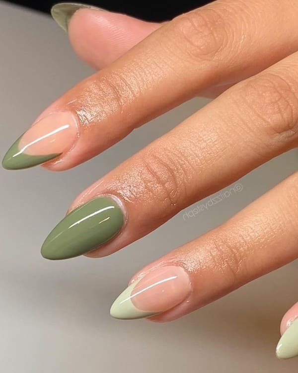 Utilize negative space as a design element on sage green nails. Allow portions of your natural nails to shine through for a modern and chic look.