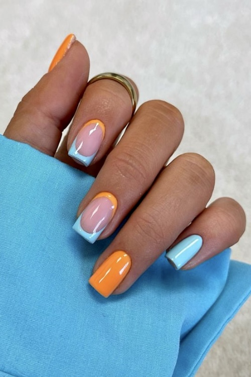 The classic French manicure gets a modern update with colored tips. Instead of the traditional white, try pastel, neon, or metallic tips for a trendy twist. This look is simple yet striking on short nails.
