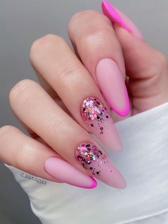 7. Pink Matte and Glossy Tips: