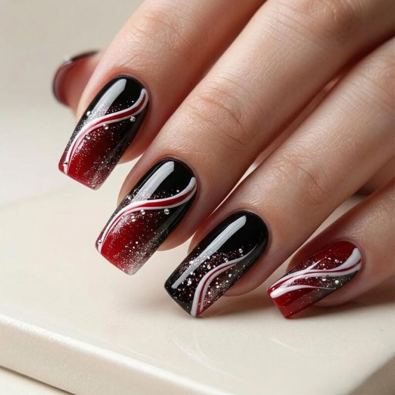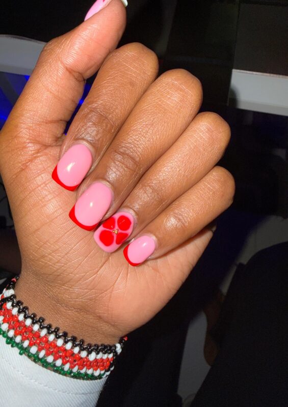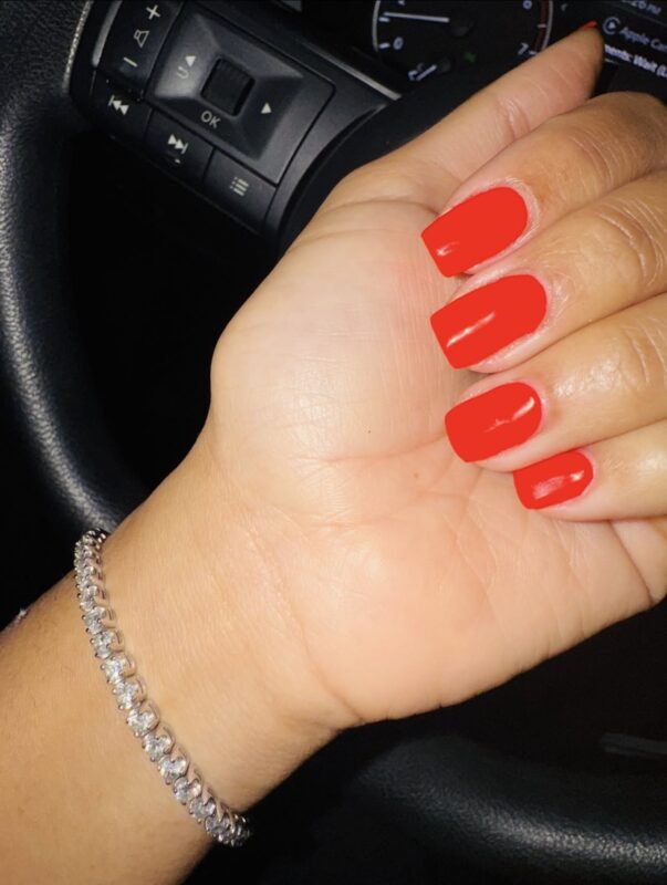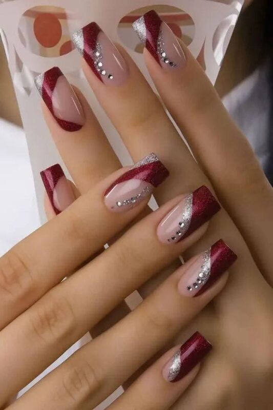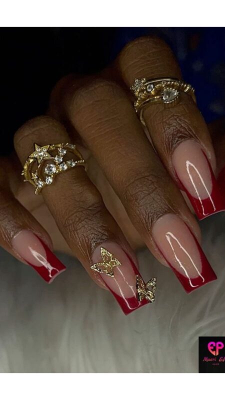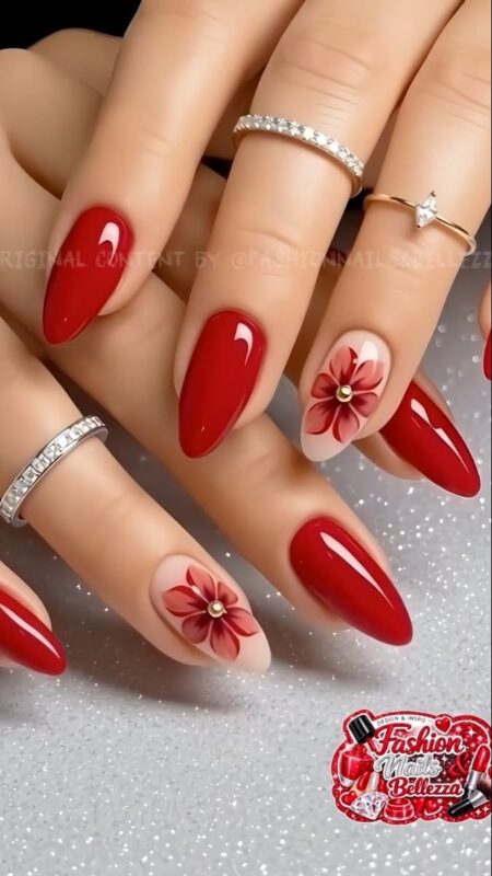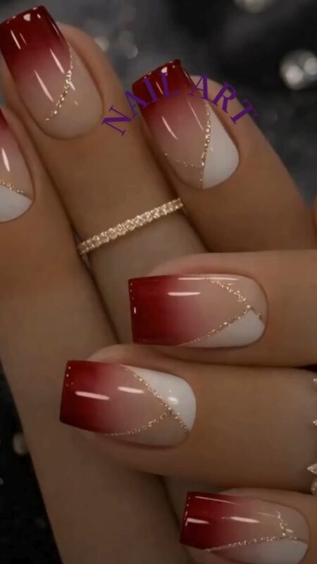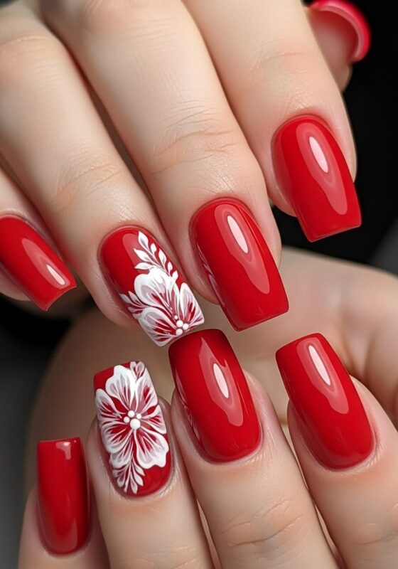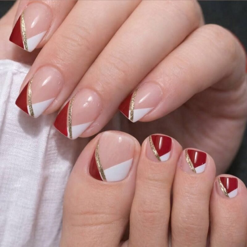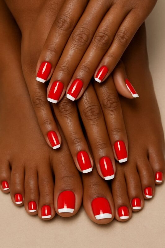 For a clean everyday manicure, classic red polish on short square or rounded nails works perfectly. It makes the hands appear well-groomed and gives a confident finish. If you prefer something softer, red French tips are a lovely option. They keep the natural nail visible while adding a bold touch at the edges.
