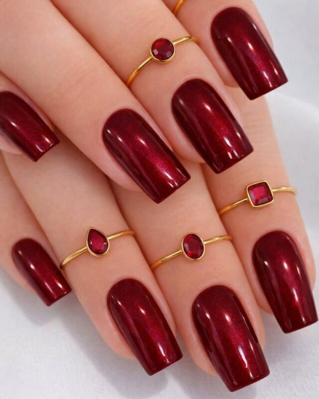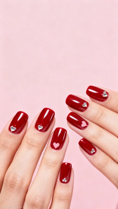 For more detail, small heart accents, tiny rhinestones, fine gold lines, or a single glitter nail can make short red nails feel more creative without looking heavy. Dark red shades are also beautiful for cooler seasons, while bright red tones feel lively and eye-catching.