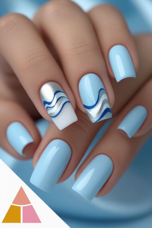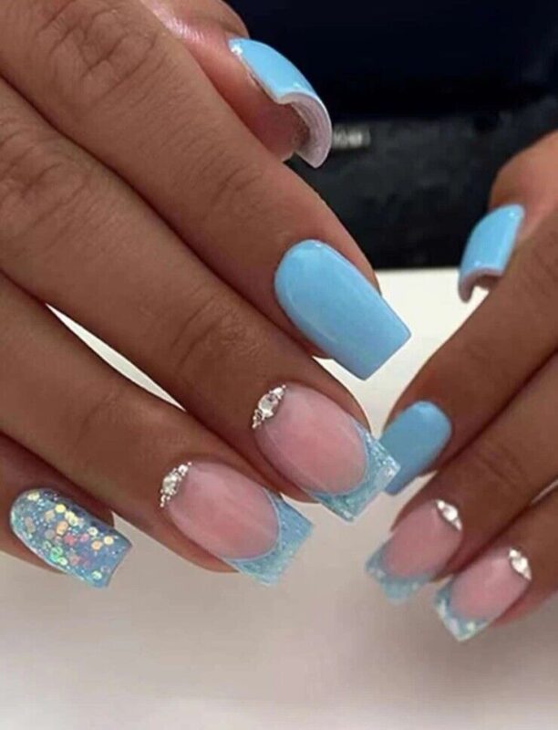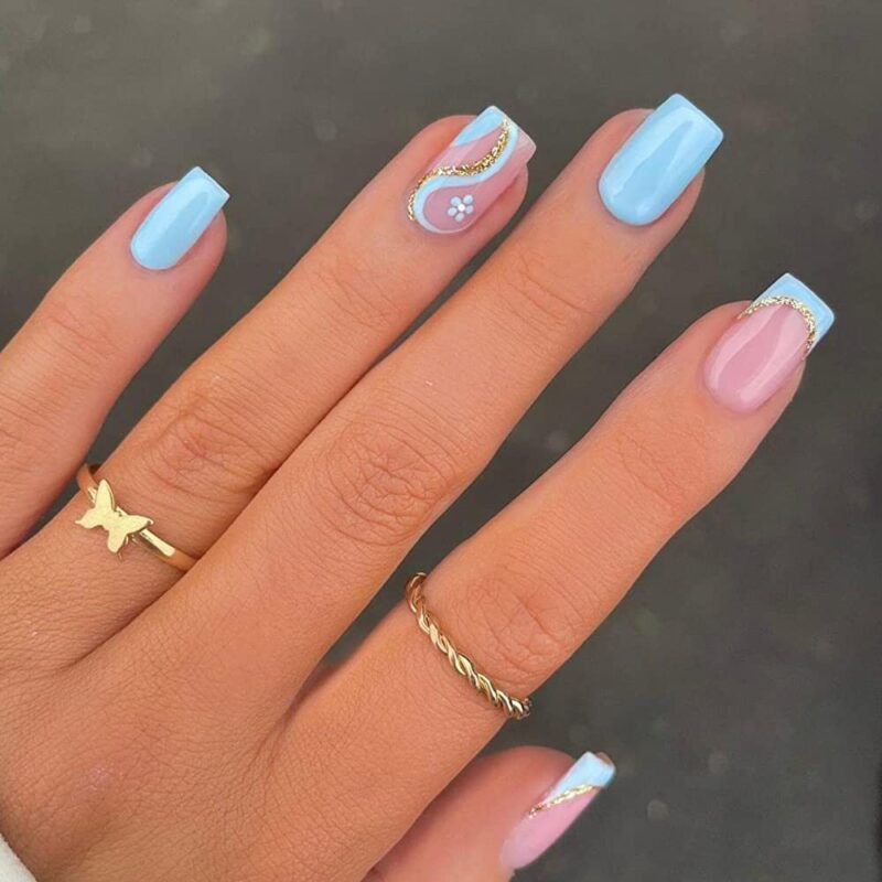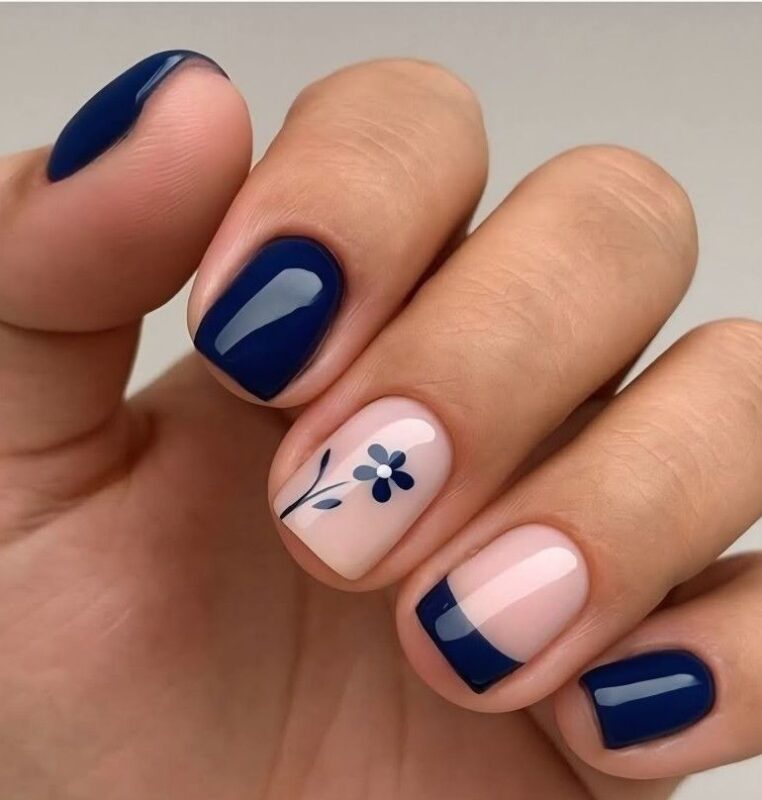Lighter shades such as baby blue, sky blue, and pastel blue create a delicate and calming effect. These tones are perfect for soft nail looks and give short nails a polished appearance. For a slightly deeper style, dusty blue, teal blue, or soft navy can add more depth while still keeping the manicure smooth and balanced.