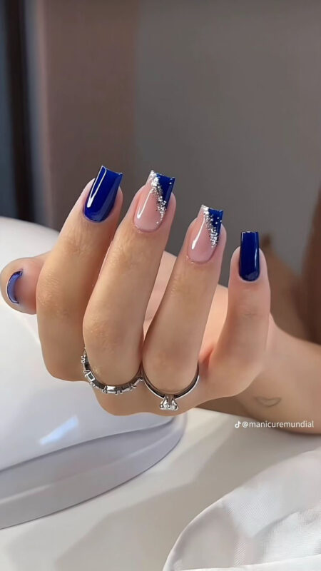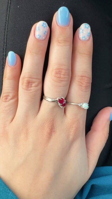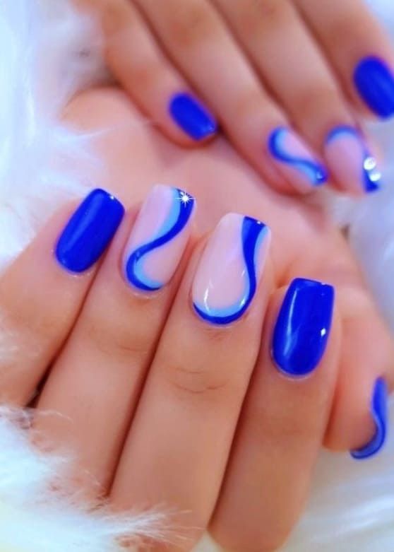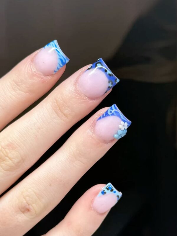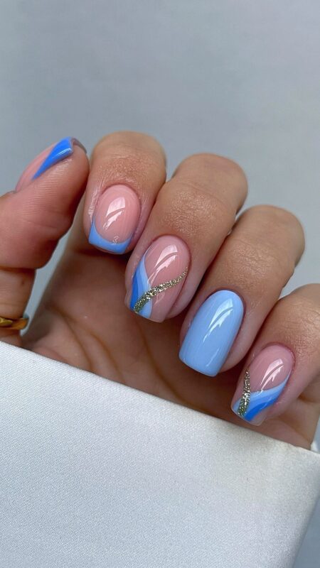 Short blue nail art becomes even more attractive with simple details. Tiny white flowers, subtle swirl patterns, fine silver lines, mini stars, and soft glitter accents can all add personality without making the design feel too busy. Blue French tips are also a lovely idea for short nails because they keep the manicure light while adding a fresh and modern finish.