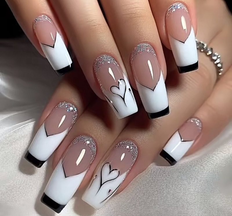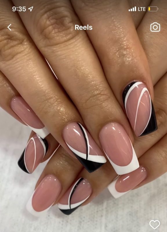 Black is a versatile color that can be styled in countless ways. For a chic and simple look, opt for glossy black nails with a smooth, high-shine finish. This classic style is both timeless and edgy, perfect for adding a touch of sophistication to any outfit. If you’re in the mood for something more eye-catching, try adding metallic accents like gold or silver stripes, or a delicate touch of glitter to the tips for a glam twist.