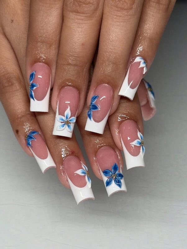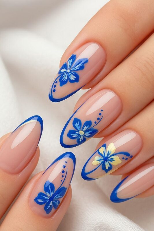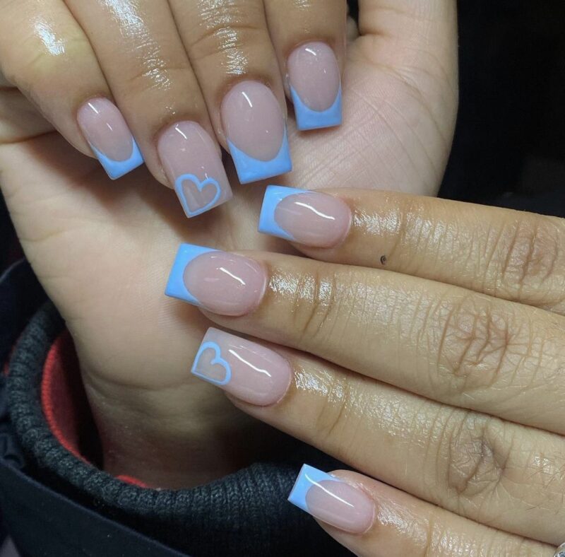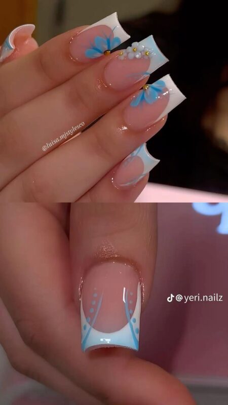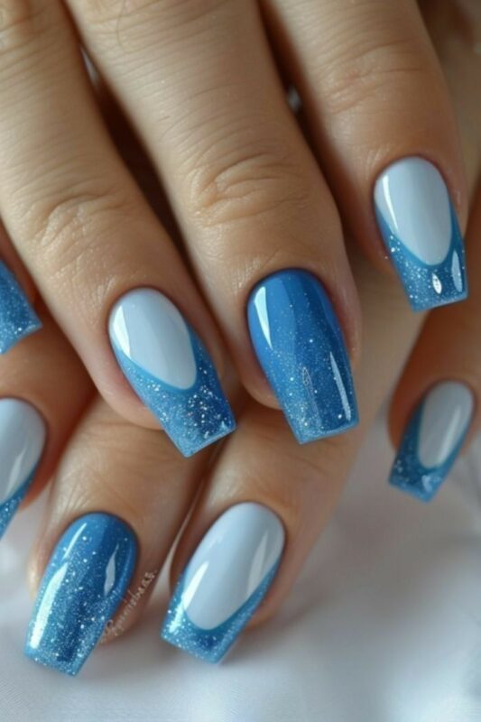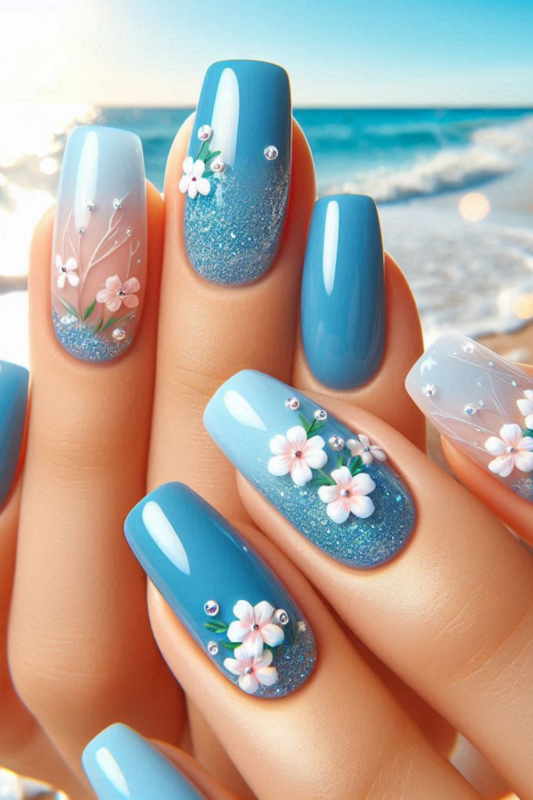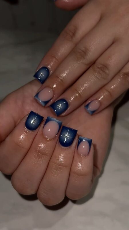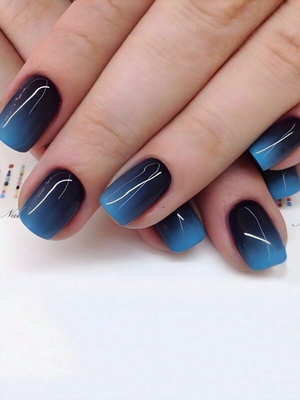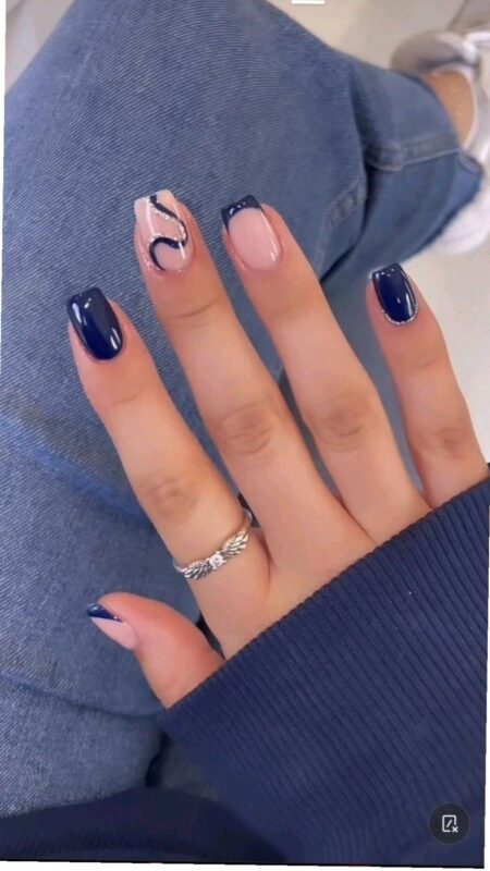 Simple nail art can make blue short nails even more attractive. Thin French tips, tiny white flowers, light swirl details, small silver accents, or one glossy accent nail can add charm without making the design look crowded. A glossy top coat helps blue shades look smoother and cleaner, while a soft matte finish gives the nails a more subtle feel.