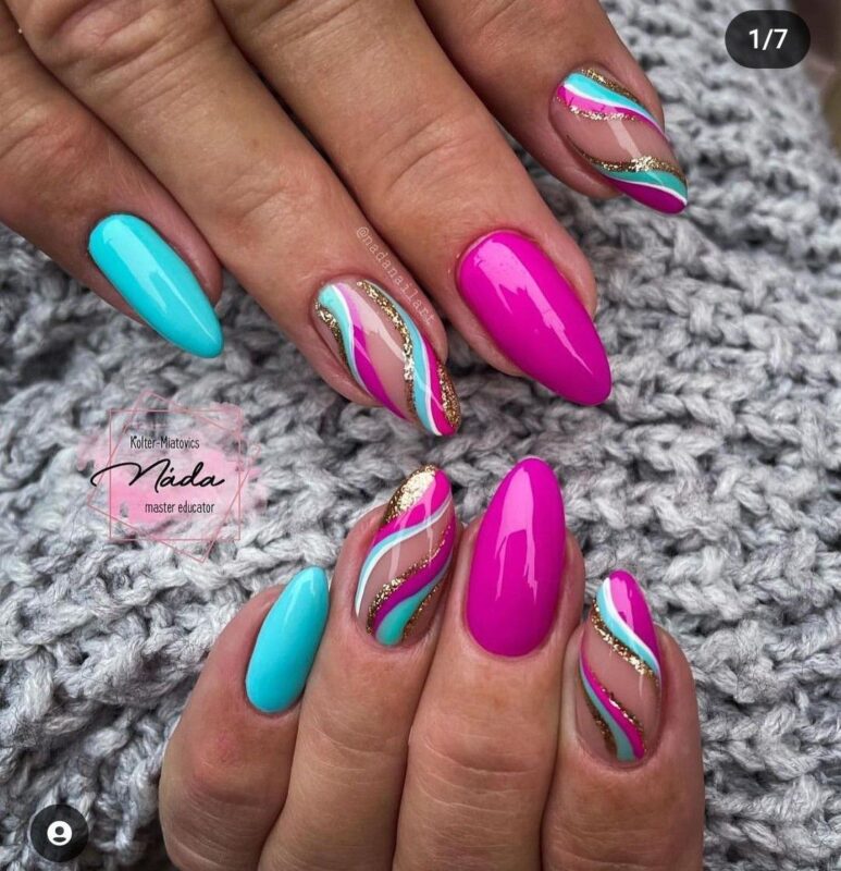 - Design: Vibrant neon shades, either as solid colors, French tips, or part of a pattern.