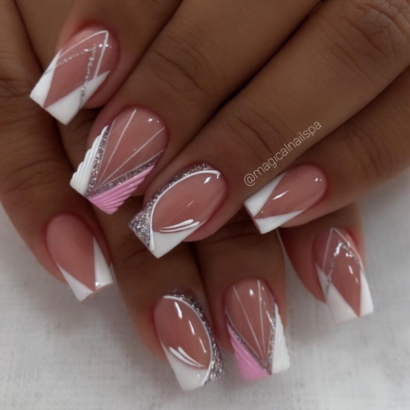 4. White and Gold Glamour: Combine white with gold accents – such as gold leaf, glitter, or thin stripes – for a luxurious and glamorous look.
