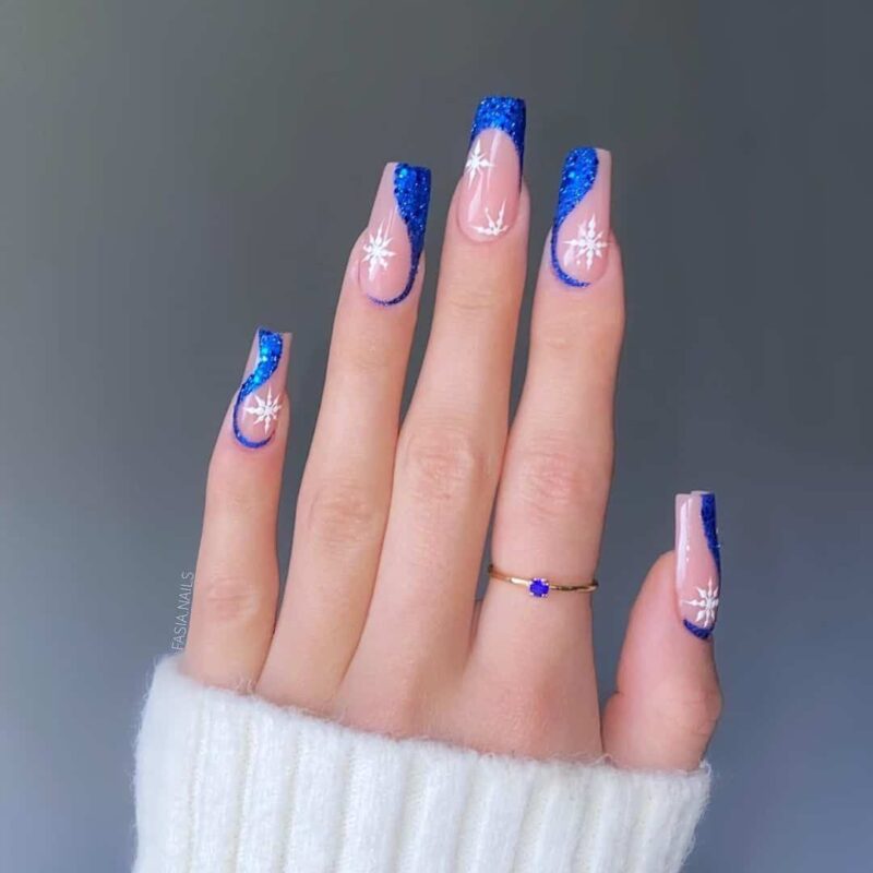10. Mixed Shades of Blue: Don’t be afraid to mix different shades of blue on your nails. This can create a dynamic and textured look, perfect for holiday experimentation and fun.