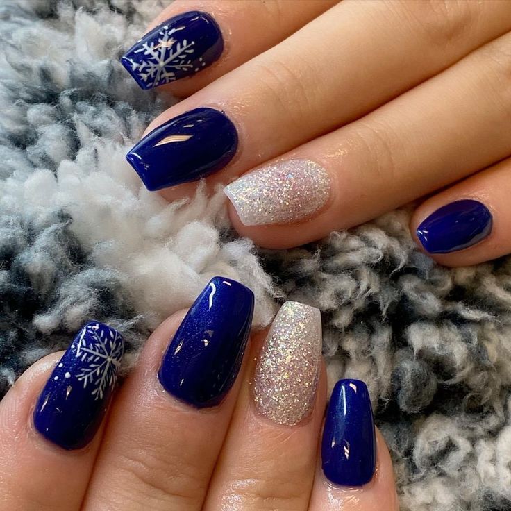 7. Royal Blue and Crystals: For a touch of holiday luxury, adorn royal blue nails with crystals. This design is perfect for holiday events where you want to make a glamorous statement.