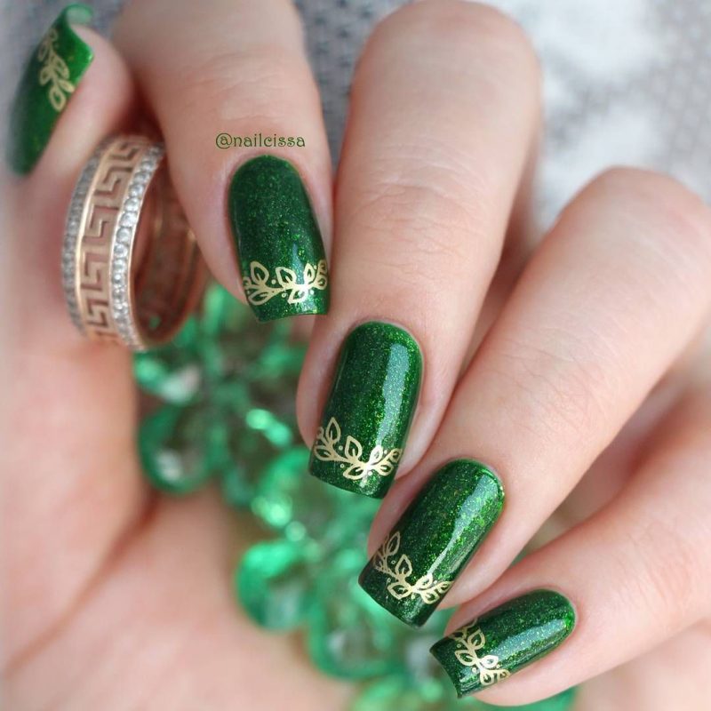 - Emerald City: Opt for a deep emerald green base and add a touch of luxury with gold foil or gold glitter accents. This design not only feels luxurious but also stays true to the Irish theme with its rich, jewel-toned palette.