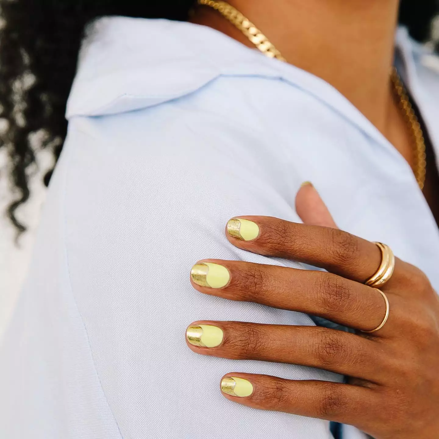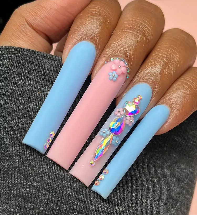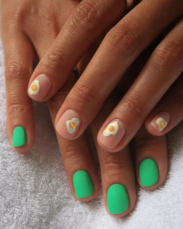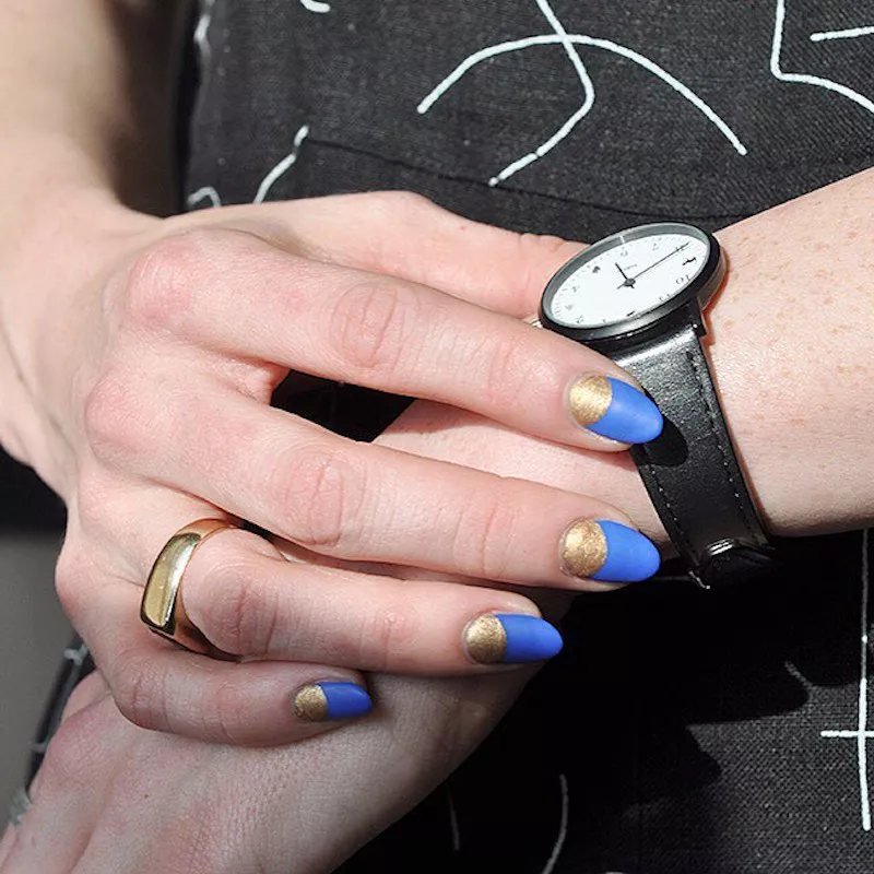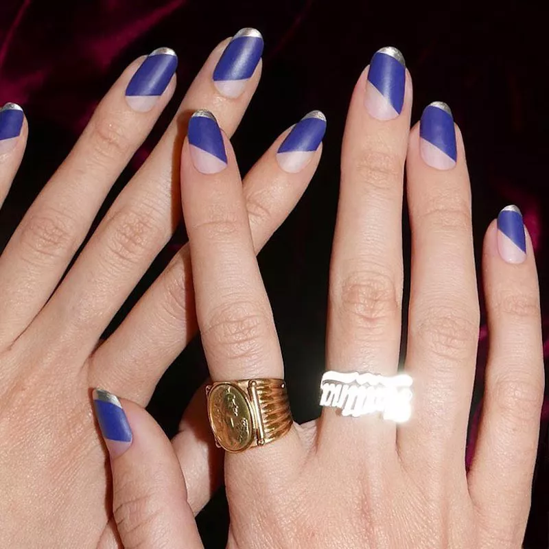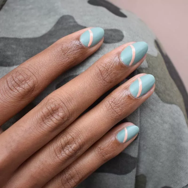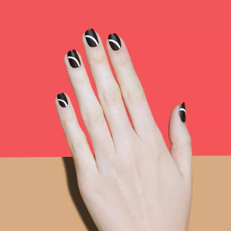 We have to admit, we have a thing for black and red nails. Here, we see how using a matte black texture as an accent is a great contrast against shiny red nails on the same hand. Consider throwing in patterned nail art to add some lightheartedness to an otherwise dramatic color canvas.