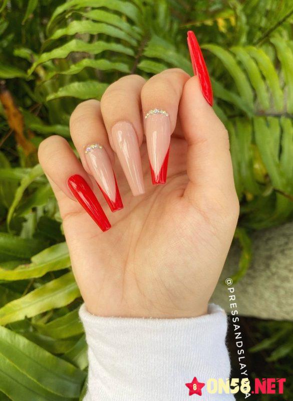 - Rhinestone Embellishments: Adorn your red coffin nails with rhinestones for an extra touch of elegance and luxury.