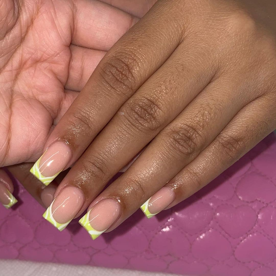 2. French Tip Revamp: Modernize the classic French tip by using unconventional colors or a diagonal or wavy line.